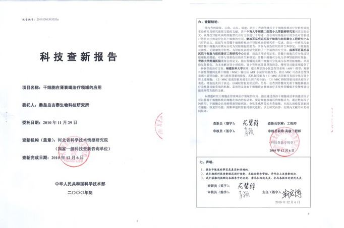 ÇØ»Êµº¼ªÌ©ÉúÎï¿Æ¼¼Ñо¿Ëù11ÔÂÉêÇëºÓ±±Ê¡¿ÆÑ§¼¼ÊõÇ鱨Ñо¿Ôº¶ÔÎÒËù¿ÆÑÐÏîÄ¿½øÐвéÐÂίÍУ¬ÏîÄ¿Ãû³ÆÎª¡°¸Éϸ°ûÔÚÉöË¥½ßÖÎÁÆÁìÓòµÄÓ¦Óᱡ£´Ë´Î²éÐÂÄ¿µÄΪ´Ë¿ÆÑÐÏîÄ¿µÄ³É¹û¼ø¶¨¡£