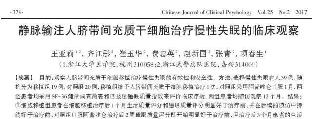 2017Ä꣬·¢±íÔÚ¡¶ÖйúÁÙ´²ÐÄÀíѧ¡·ÔÓÖ¾µÄÒ»ÏîÁÙ´²¹Û²ì³É¹ûÏÔʾ£¬Æê´ø¼ä³äÖʸÉϸ°û¿É¸ÄÉÆÂýÐÔʧÃß»¼ÕßµÄ˯ÃßÖÊÁ¿¡£