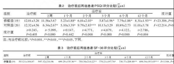 ËûÃÇ·¢ÏÖ£¬ÒÆÖ²×黼Õß¾Ò»´Îϸ°ûÒÆÖ²¸ÉÔ¤ºó£¬»¼ÕßµÄ˯ÃßÖÊÁ¿¡¢Ë¯ÃßÕϰºÍÈռ书ÄÜÕϰµÃµ½¸ÄÉÆ£¬²¢ÇÒÎÞÃ÷ÏÔ²»Á¼·´Ó¦¡£¸ÉÔ¤ºó1¸öÔ£¬Æê´ø¼ä³äÖʸÉϸ°ûµÄ˯Ã߸ÄÉÆ×÷ÓÃͬ¿Ú·þÒ©ÎïÏ൱;¸ÉÔ¤2¸öÔºó£¬ÒÆÖ²×éµÄ˯ÃßÖÊÁ¿ÆÀ·ÖºÃÓÚ¶ÔÕÕ×飻¸ÉÔ¤3¸öÔºó£¬ÒÆÖ²×éµÄÉú»îÖÊÁ¿Ò²ÓÅÓÚ¶ÔÕÕ×é¡£