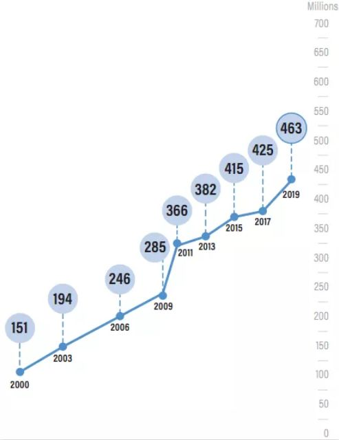 ×îеØÍ¼ÏÔʾ£¬Ä¿Ç°È«Çò·¶Î§ÄÚ¹À¼ÆÔÚ20Ëê~79ËêÈËȺÖÐÓÐ4.63ÒÚÈË»¼ÓÐÌÇÄò²¡£¬¾ø´ó¶àÊýΪ2ÐÍÌÇÄò²¡£¬Ï൱ÓÚÿ11¸ö³ÉÈËÖоÍÓÐ1Ãû»¼Õß¡£