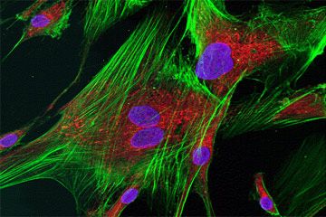 ÂÌɫΪϸ°û¹Ç¼Ü£¬×ÏɫΪϸ°ûºË£¬ºìɫΪϸ°ûÖʵ°°×¡£