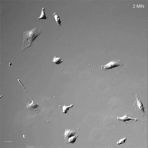 ϸ°ûÉú³¤¹ý³Ì72hÑÓʱÊÓÆµÖмä³äÖʸÉϸ°ûϸ°ûËÄ´¦ÅÀÐУ¬·ÖÁÑǰ»áͻȻ¾Û¼¯³ÉÁÁÁÁµÄÔ²Çò£¬È»ºóÒ»·ÖΪ¶þ¡£
