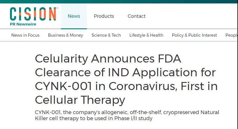 2020Äê1Ô£¬ÃÀ¹úSorrentoÖÆÒ©¹«Ë¾ÓëCelularityϸ°ûÖÎÁƹ«Ë¾¾ÍÁªºÏÐû²¼³¢ÊÔÀûÓÃÌ¥ÅÌÀ´Ô´µÄ×ÔȻɱÉË£¨NK£©Ï¸°ûÒ©ÎïCYNK-001À´ÖÎÁÆÓëÔ¤·À¹Ú×´²¡¶¾¡£Ëæºó£¬ÃÀ¹úFDAÅú×¼Á˸ÃÁÆ·¨µÄÐÂÒ©ÁÙ´²ÊÔÑéÉêÇ룬ÓÃÓÚÖÎÁƳÉÄêйڷÎÑ×»¼Õß¡££¨¶Ô¿¹Ð¹ڷÎÑס¢°©Ö¢µÈ¼²²¡µÄÐÂÎäÆ÷£ºÐÂÉú¶ùÃâÒßϸ°û£©
