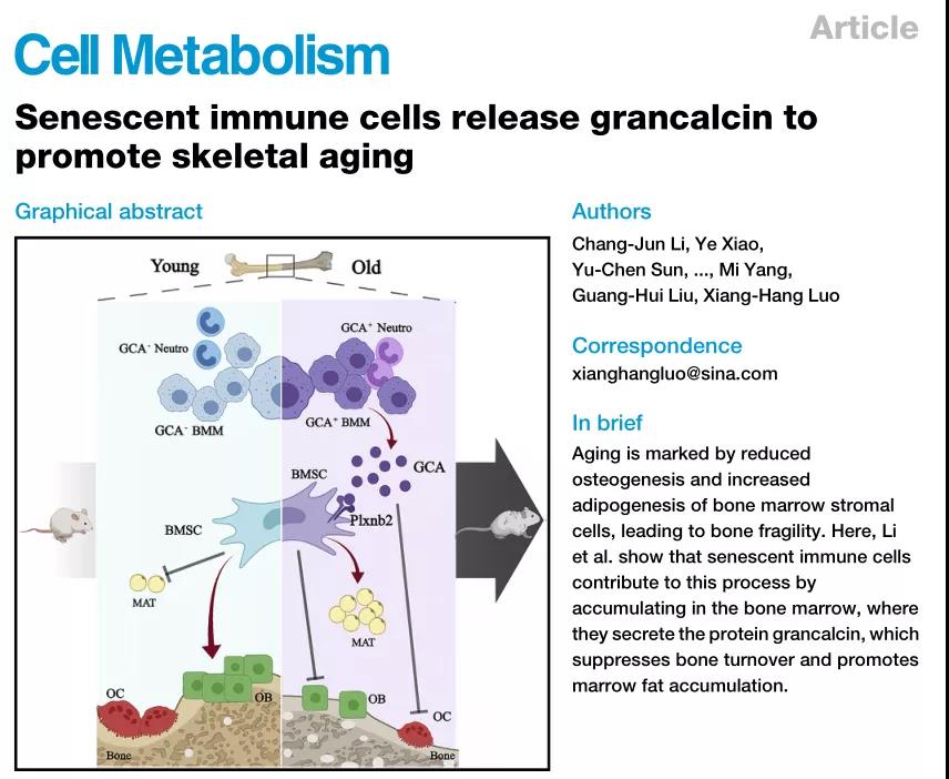 9ÔÂ10ÈÕ£¬ÖÐÄÏ´óÑ§ÏæÑÅÒ½ÔºÄÚ·ÖÃÚ¿ÆÖ÷ÈΡ¢ÄÚ·ÖÃÚÑо¿ÖÐÐÄÖ÷ÈÎÂÞÏæº¼½ÌÊÚÍŶÓÔÚ´úлÑо¿ÁìÓò¶¥¼¶ÆÚ¿¯¡¶Cell Metabolism¡·(IF= 27.287)ÔÚÏß·¢±íÁËÌâΪ¡°Senescent immune cells release grancalcin to promote skeletal aging¡±ÃâÒßµ÷¿Ø¹ÇË¥ÀϵÄÔ´´ÐÔÑо¿³É¹û¡£ÖÐÄÏ´óÑ§ÏæÑÅÒ½ÔºÄÚ·ÖÃÚ¿ÆÀ¿¡½ÌÊÚΪµÚÒ»×÷Õߣ¬ÂÞÏæº¼½ÌÊÚΪͨѶ×÷Õß¡£ÎÄÕÂÀûÓÃиñÔª¶À¼Òµ¥Ï¸°ûÊý¾Ý¿âSynEcoSys®½øÐе¥Ï¸°û¹«¹²Êý¾ÝµÄÍÚ¾ò·ÖÎö£¬Í¨¹ýscRNA-seqÊý¾ÝÍÚ¾ò½øÒ»²½½âÎöÁËÃâÒßµ÷½Ú¹ÇË¥ÀϵÄϸ°ûÑÇȺ¼°·Ö×Ó»úÖÆ¡£