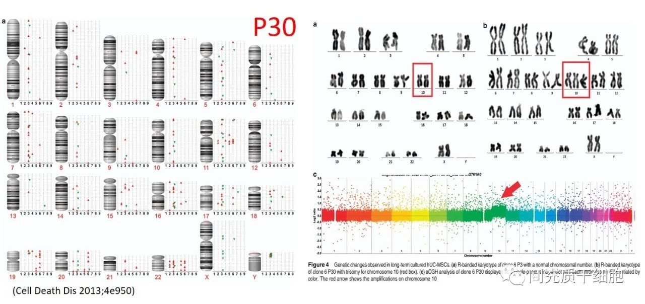 2010ÄêµÄһƪÓÉ·¨¹ú13¸ö¿ÆÑе¥Î»¹²Í¬·¢±íÔÚ¡¶ÑªÒº¡·ÔÓÖ¾µÄʵÑéÎÄÕ£¬·¢ÏÖÈ˹ÇËèMSCÔÚP1´úµÄʱºò¾Í¿ÉÒÔ³öÏÖȾɫÌåÒì³££¨·ÇÕû±¶Êý£©£¬µ«ÊÇȾɫÌåÒì³£²¢²»Ó°Ïìµ½MSCµÄ±¶Ôöʱ¼ä£»¶øÇÒСÊó³ÉÁöʵÑéÖ¤Ã÷£¬¼´Ê¹MSCµÄȾɫÌåÒì³£ºÍ³¤ÆÚÅàÑøµ¼ÖµÄË¥ÀÏ£¬ÒÆÖ²µ½Ð¡ÊóÌåÄÚºó²¢²»ÄܳÉÁö¡£