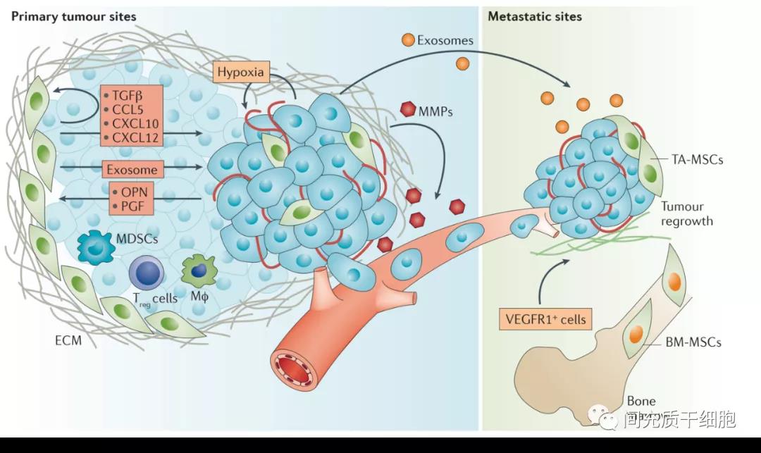 Ö×Áöϸ°ûÐèÒª²»¶ÏÔöÖ³£¬ÄǾÍÐèÒªÓдóÁ¿µÄѪҺ¹©Ó¦£¬ËùÒÔÖ×Áö×éÖ¯ÄÚ²¿³öÏÖѪ¹ÜµÄÉú³É£¬×ÔÈ»°éËæ×Å´óÁ¿µÄÖÜϸ°û£¨»òMSC£©À´²ÎÓë×齨Ѫ¹Ü¡£1999Ä꣬MaestroniµÈÔڷΰ©ºÍºÚÉ«ËØÁöµÄÖ×Áö²¿Î»ÕÒµ½MSC¡£Ëæºó£¬MSC±»Ö¤Ã÷´æÔÚÓÚ¶àÖÖÖ×Áö×éÖ¯»ùÖÊÖУ¬°üÀ¨ºÚÉ«ËØÁö¡¢ÒÈÏÙ°©¡¢Âѳ²°©¡¢½á³¦°©¡¢ÈéÏÙ°©¡¢·Î°©¡¢¶ñÐÔ½ºÖÊÁöºÍKaposiÈâÁö¡£