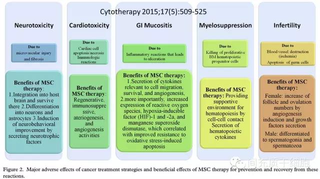 ÓÉÓÚMSC¾ßÓкÜÇ¿µÄÖ§³ÖÔìѪ¡¢ÏûÑס¢·ÖÃÚ¶àÖÖÉú³¤Òò×Ó¶ø´Ù½ø×éÖ¯Æ÷¹ÙµÄ×ÔÎÒÐÞ¸´µÈ×÷Óã¬ÀíÂÛÉÏÄÜ»º½âºÍ¶Ô¿¹Ö×ÁöµÄ·Å»¯ÁÆÒýÆðµÄ¶¾¸±×÷Ó᣶¯ÎïʵÑéÏÔʾMSCÄÜͨ¹ý¶àÖÖ×÷ÓûúÖÆÐÞ¸´·ÅÁƵ¼ÖµĽ¡¿µ×éÖ¯µÄËðÉË£¬µÖÏû·ÅÁƵ;¸±×÷Óã¬ÑÓ³¤·ÅÁƺó¶¯ÎïµÄÉú´æÊ±¼ä¡£µ«ÊÇ£¬Ä¿Ç°Ã»ÓÐÁÙ´²£¨ÈËÌ壩Ñо¿Êý¾ÝÖ¤Ã÷MSC´Ù½øÖ×ÁöµÄÉú³¤»¹ÊÇÒÖÖÆÖ×ÁöµÄÉú³¤£¬Ò²Î´¼ûÓÐMSCÁªºÏ·Å»¯ÁÆÖÎÁÆÖ×ÁöµÄÁÙ´²½á¹û±¨µÀ£¬ÕâÐèÒª½ñºóÁÙ´²ÑϽ÷µÄ¿ÆÑ§Ñо¿¡£