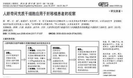 05 中国组织工程研究:肝移植手术后输注脐带间充质干细胞,可改善患者免疫状态