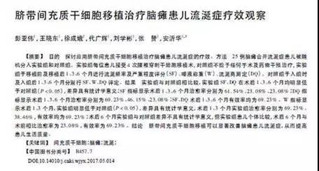 06 武警医院:脐带间充质干细胞能改善脑瘫患儿流涎症