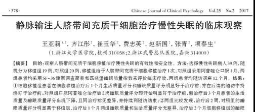 07 中国临床心理学杂志:输注一次安睡一年 脐带间充质干细胞有望取代安眠药