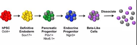 体内胰腺细胞发育的过程和信号通路已经研究的较为清楚,基于这些研究理论,近几年来研究者们利用不同的激素和生长因子去刺激或者抑制相应的信号通路,在体外利用人的多能干细胞分化成胰腺祖细胞,继而产生能分泌胰岛素的β样细胞,已经取得了相当多的进展。多个实验室目前都关注在产生成熟的功能齐全的β样细胞和胰岛细胞,希望将他们移植到人体内可以取代人类胰岛的功能。