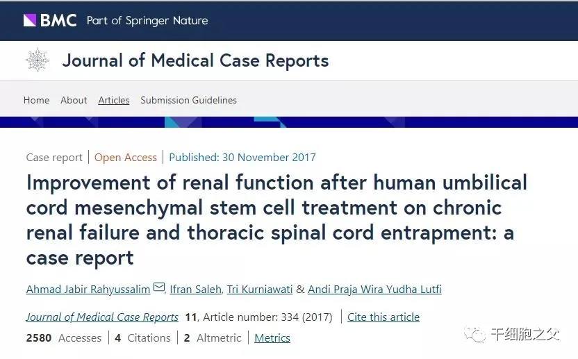 临床结果:鞘内注射和静脉注射三周后,患者可以移动脚趾,肾功能得到改善。肌酐水平降至9 mg/dL。8个月后,患者可以抬起腿,肌酐水平是2mg/dL,小便恢复正常。