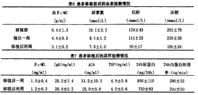 对61例CDF患者采用全身和局部输注的方法干细胞移植,两周后患者的血β2-MG、尿素氮、肌酐、尿酸等指标显著下降,尿β2-MG、IgG、Alb、THP、24h尿蛋白、24h白蛋白排泄等指标也显著改变,证明患者的肾功能提高。