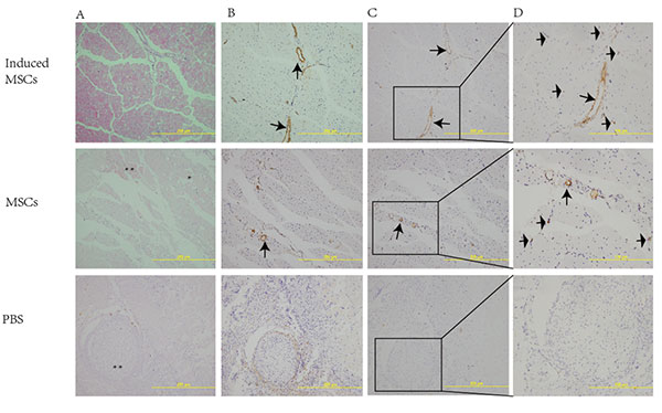 该院介入血管外科邹英华教授、杨敏副教授和血液内科李渊副教授合作,将骨髓来源间充质干细胞在体外建立的诱导平台上进行短期诱导,获得内皮样细胞,研究诱导前后其细胞性质及功能等变化;之后移植于小鼠下肢缺血模型进行验证并评价其治疗效果,观察其促进血管新生能力、增加患肢血液灌注能力、体内存活能力等在诱导前后的变化;并通过使用转基因EGFP荧光小鼠,应用免疫荧光技术首次直观示踪移植细胞在小鼠体内生成血管的过程,以期为下肢缺血性疾病的再生医学研究提供种子细胞。